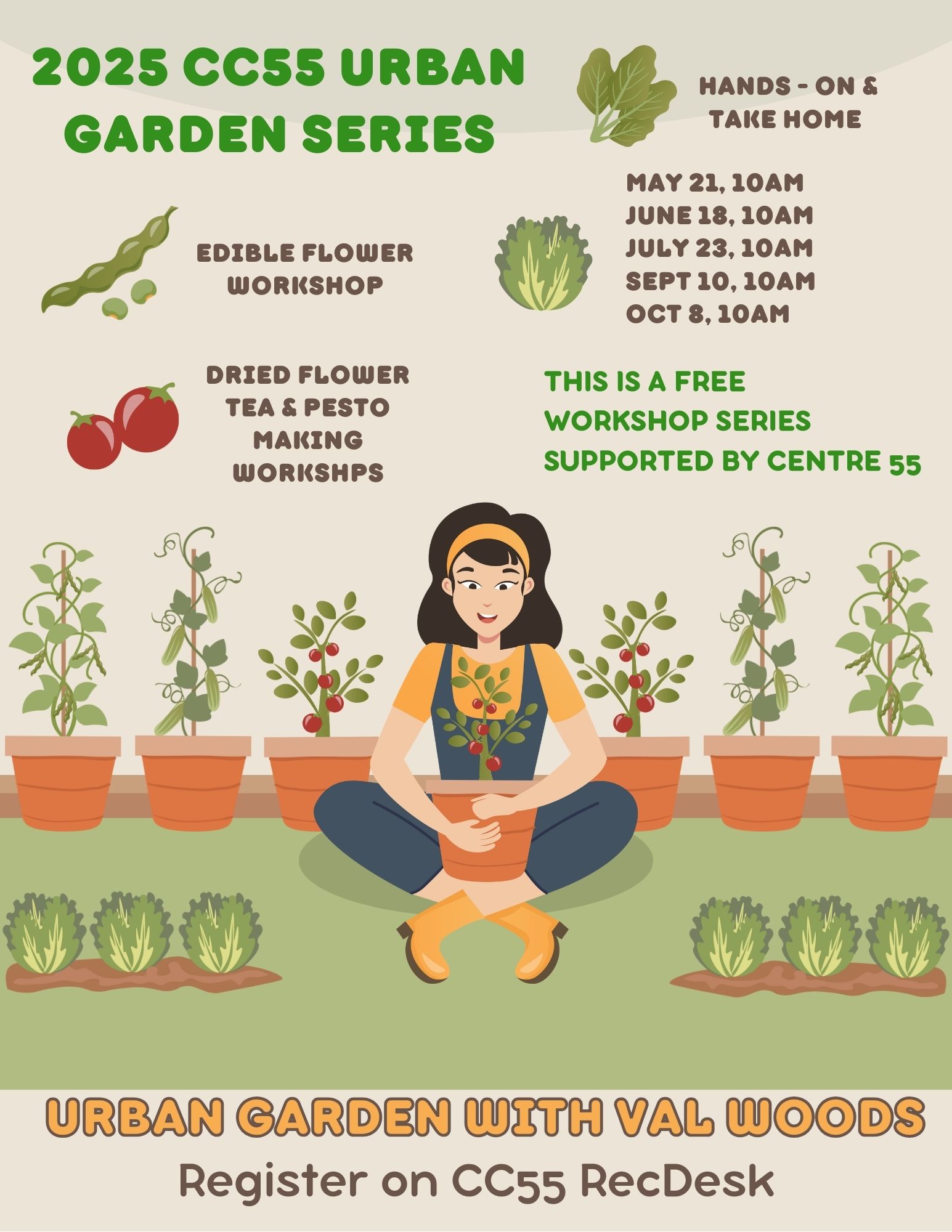 Urban Garden Workshop Join Centre 55’s Urban Garden Series with hands-on and take home growing workshops! Free for members. + Add to Google Calendar + iCal / Outlook export Date Oct 08 2025 Expired! Time 10:00 am - 11:00 am Category Adults & Seniors Calendar of Events Upcoming Events Share this event