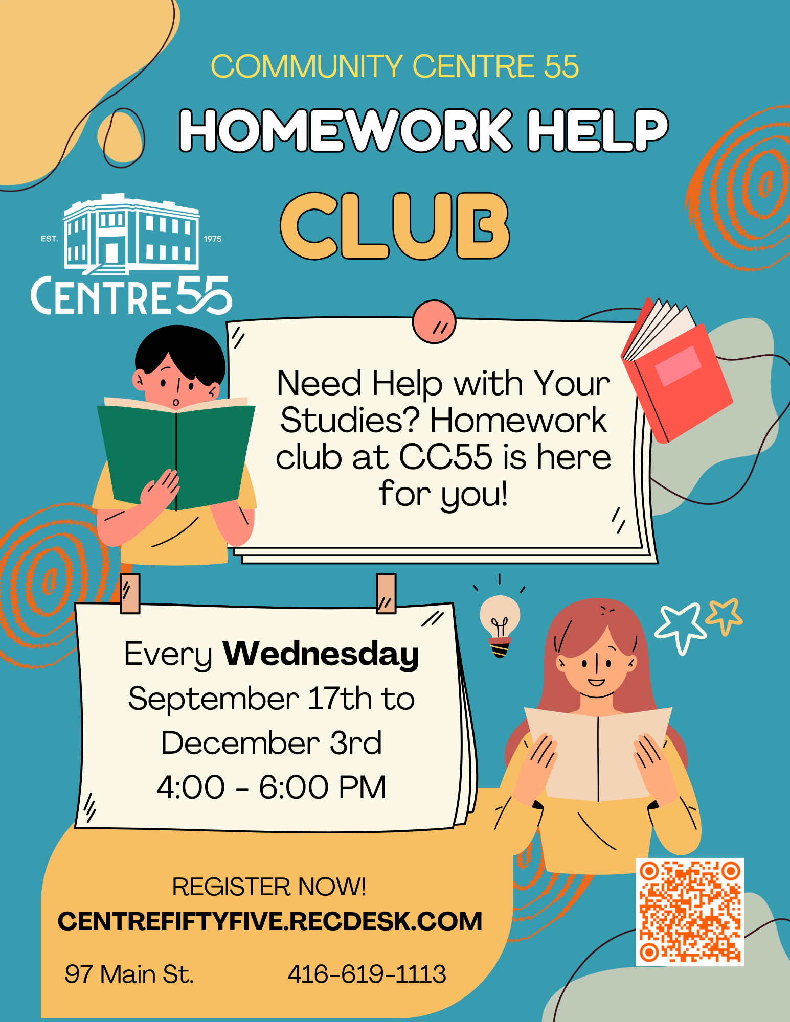 Tutoring is provided by high-performing local Grade 11 and 12 students, offering peer-to-peer guidance in math, science, and other subjects. Our Centre 55 staff will be on-site the entire time to supervise and provide additional guidance if needed, ensuring a safe and supportive space for all students.