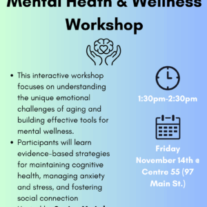 Next Informative Friday: Mental Health and Wellness Workshop- November 14th This interactive Workshop focuses on understanding the unique emotional challenges…